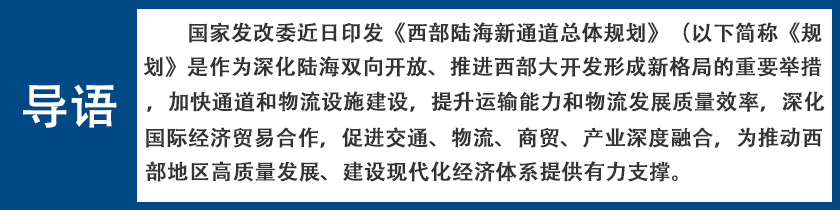 西部陸海新通道位于我們西部地區(qū)腹地,北街絲綢之路經濟帶,南連21世紀海上絲綢之路,協(xié)同銜接長江經濟帶,在區(qū)域協(xié)調發(fā)展格局中具有重要戰(zhàn)略地位。