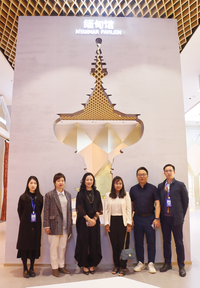 在參觀匯聚中心17個(gè)國家及地方特色展館過程中,趙海燕董事長介紹了匯聚中心展館如何通過人文設(shè)計(jì)理念烘托出各國當(dāng)?shù)靥厣a(chǎn)品,以沉浸式的獨(dú)特商品貿(mào)易體驗(yàn)促進(jìn)交易。作為匯聚中心精心打造的國家主題展館,緬甸館以該國傳統(tǒng)特色文化為基調(diào),巧妙融合本地風(fēng)土人情元素打造的“金色緬甸”效果,贏得了高凱玨參贊的認(rèn)可。她表示緬甸館不僅設(shè)計(jì)別出心裁,而且能夠在一定的空間里盡可能地將緬甸多元文化與特色產(chǎn)品展示出來,可見項(xiàng)目策劃人所費(fèi)的心思不一般。