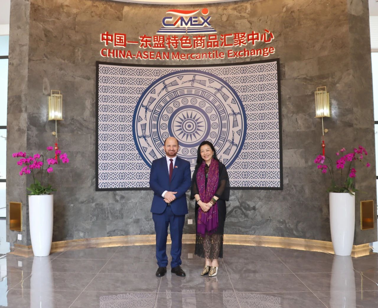 趙海燕董事長(zhǎng)與薩達(dá)爾· 穆罕默德代理總領(lǐng)事在匯聚中心合影
