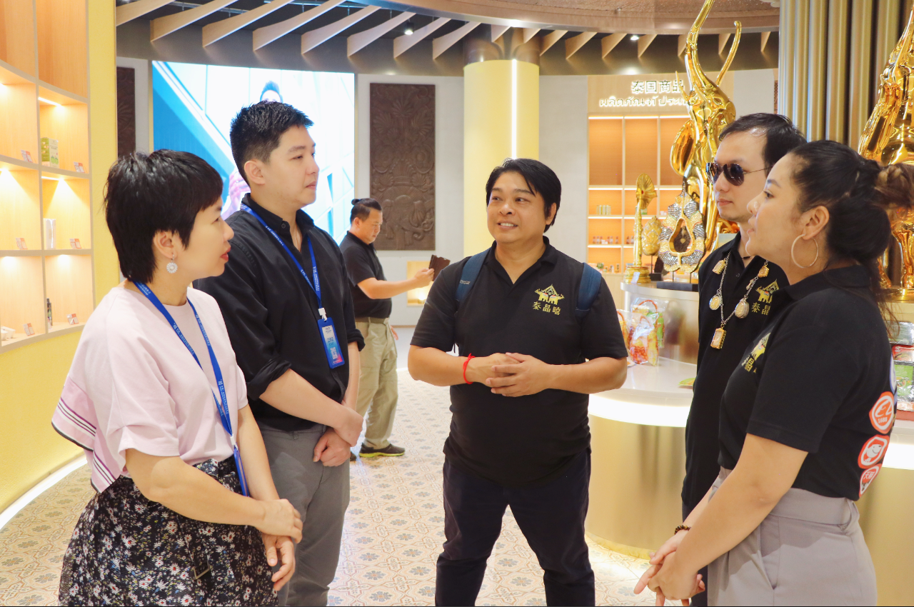 到訪的泰國(guó)企業(yè)代表團(tuán)均是在2022年9月14日匯聚中心啟動(dòng)時(shí)就已將商品入駐泰國(guó)館的企業(yè),但多數(shù)企業(yè)未能親臨匯聚中心。在此次參觀匯聚中心主題展館時(shí),泰國(guó)館館長(zhǎng)用流利的泰語(yǔ)與泰國(guó)企業(yè)代表團(tuán)一行進(jìn)行溝通。他們非常欣喜地表示雖然人未到,但商品已經(jīng)通過匯聚中心走進(jìn)中國(guó)市場(chǎng)并受到客商們的青睞,對(duì)于將更多商品入駐匯聚中心也更有信心。
