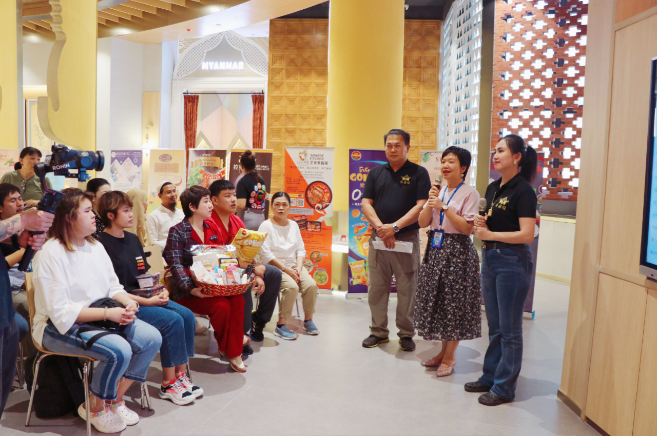 盧春梅副總經(jīng)理表示泰國(guó)是世界著名的旅游勝地,商品以種類豐富、物美價(jià)廉等特點(diǎn)深受中國(guó)和東盟國(guó)家市場(chǎng)歡迎。匯聚中心泰國(guó)館通過將泰國(guó)經(jīng)典的蓮花、佛像、大象等元素巧妙融合到展館設(shè)計(jì)之中,給客商身臨其境之感,自開館以來就因濃郁的泰國(guó)傳統(tǒng)文化和豐富的商品成為匯聚中心最受歡迎的展館之一。這次近距離接觸,泰國(guó)企業(yè)代表團(tuán)推銷產(chǎn)品的熱忱令人感動(dòng)。她非??春锰﹪?guó)的直播市場(chǎng),匯聚中心愿與泰國(guó)企業(yè)在電商直播、線下商貿(mào)等領(lǐng)域加強(qiáng)合作交流,助力更多的泰國(guó)優(yōu)質(zhì)企業(yè)及機(jī)構(gòu)到匯聚中心落戶,探尋合作商機(jī)、分享發(fā)展機(jī)遇,推動(dòng)中泰雙方的經(jīng)貿(mào)合作再上新臺(tái)階。