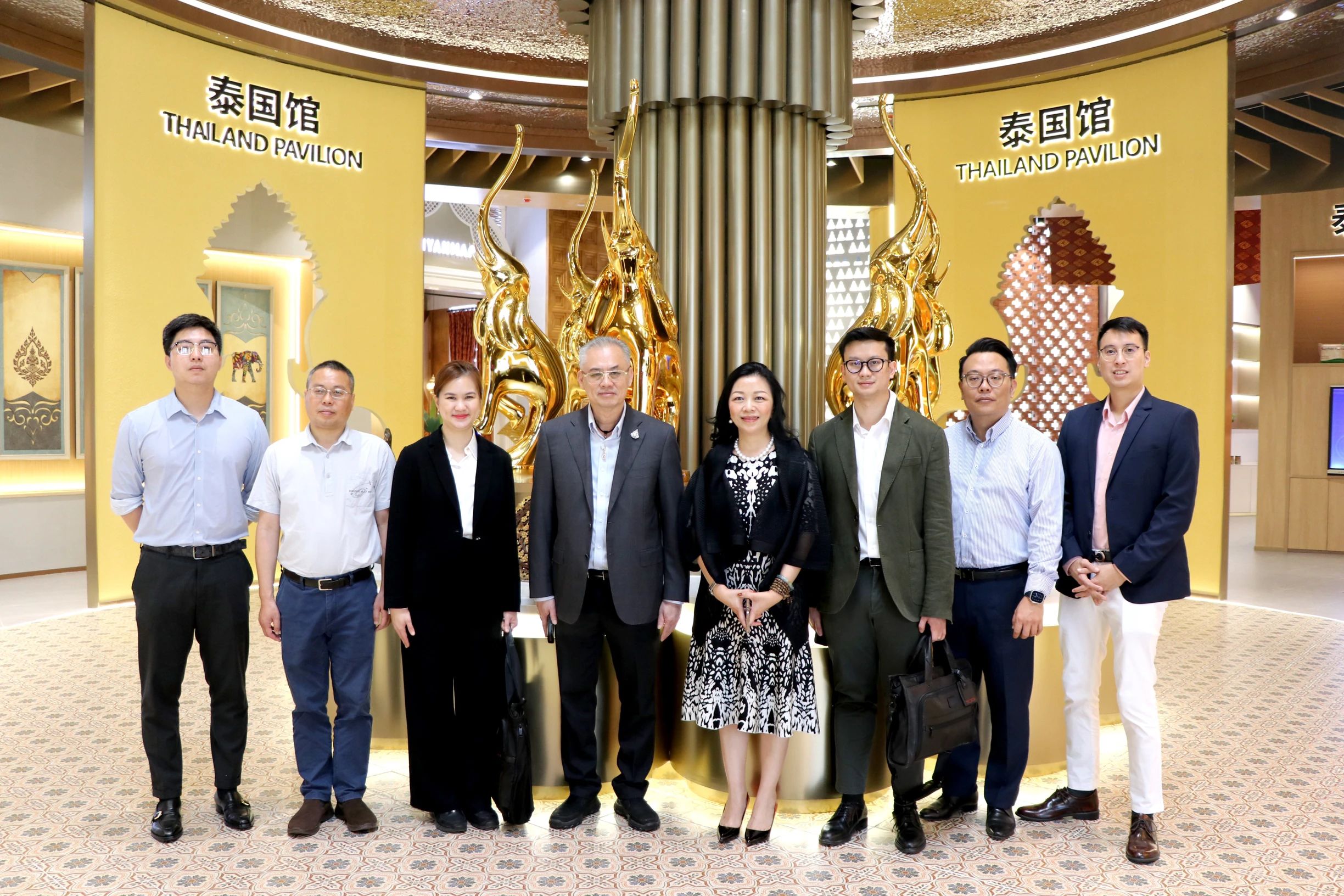 在參觀匯聚中心主題展館的過(guò)程中,考察團(tuán)一行興致濃厚,紛紛拍照留影,并對(duì)匯聚中心通過(guò)人文設(shè)計(jì)理念烘托出各國(guó)當(dāng)?shù)靥厣a(chǎn)品,以沉浸式的獨(dú)特商品貿(mào)易體驗(yàn)促進(jìn)交易的做法表示認(rèn)可。蘇威特總裁提到,2019年他就來(lái)過(guò)中新物流園,時(shí)隔4年,再次到訪考察,讓他深深地感受到了園區(qū)發(fā)展的迅猛速度。同時(shí)這也是他第一次實(shí)地參觀匯聚中心,匯聚中心創(chuàng)新的理念和精美獨(dú)特的設(shè)計(jì)給了他很大的驚喜。他認(rèn)為匯聚中心在中國(guó)與泰國(guó)乃至其他東盟國(guó)家的經(jīng)貿(mào)往來(lái)中扮演了重要角色,提供的商品免費(fèi)展示平臺(tái)降低了入駐商家的運(yùn)營(yíng)成本,讓更多泰國(guó)特色產(chǎn)品有機(jī)會(huì)進(jìn)入中國(guó)市場(chǎng),被更多人所熟知。未來(lái)他們將推介更多泰國(guó)的客商和產(chǎn)品入駐匯聚中心,希望通過(guò)匯聚中心更好地搭建中泰交流合作的橋梁,加強(qiáng)雙方在商貿(mào)物流等領(lǐng)域的合作。