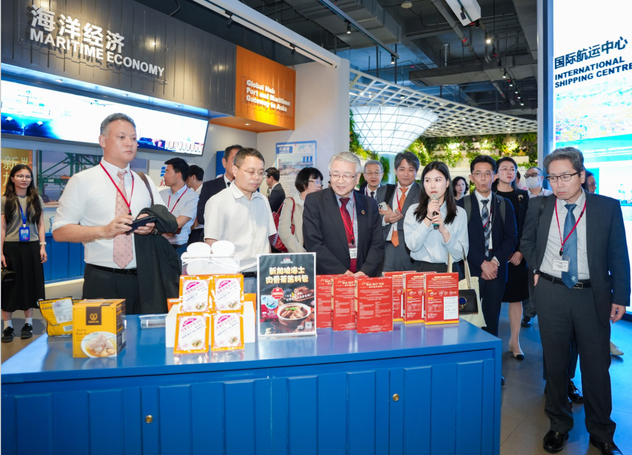 步入?yún)R聚中心,在講解員的詳細(xì)介紹下,代表團(tuán)初步了解該項目搭建的中國與東盟、RCEP其他區(qū)域國家乃至“一帶一路”沿線重要國家經(jīng)貿(mào)往來線上線下一站式首選平臺。在參觀主題館的過程中,館內(nèi)琳瑯滿目的商品、精美巧妙的設(shè)計,讓代表團(tuán)在沉浸式的商貿(mào)體驗(yàn)中切身感受了匯聚中心的創(chuàng)新模式。
