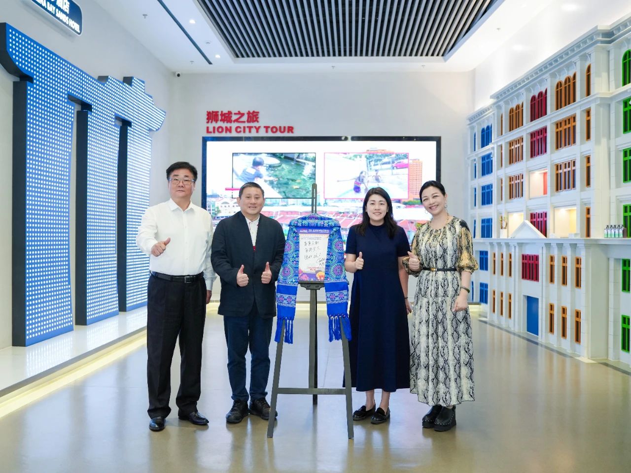 步入?yún)R聚中心,陳海泉大使便被新加坡展館門口的魚尾獅所吸引,特意駐足拍攝。進(jìn)入展館后,考察組沉浸式體驗(yàn)了璀璨星空走廊、垂直綠化的花園城市與組屋街區(qū)等場(chǎng)景,紛紛表示很開心能在廣西看到一個(gè)多維度呈現(xiàn)“獅城”獨(dú)特風(fēng)貌的地方,漫步其中恍若回到新加坡,倍感親切。同時(shí),考察組充分認(rèn)可了匯聚中心線上線下相結(jié)合的創(chuàng)新理念,并就未來在經(jīng)貿(mào)、物流等領(lǐng)域的合作與匯聚中心團(tuán)隊(duì)進(jìn)行了交流并達(dá)成共識(shí)。