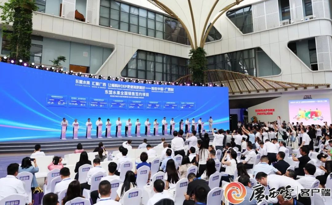 陳剛表示,廣西是中國面向東盟開放合作的前沿和窗口,也是全國水果產(chǎn)量第一的省區(qū)和東盟水果進入中國的“門戶樞紐”,號稱全國的“果盤子”。舉辦此次活動,是落實習近平主席今年4月對有關(guān)東盟國家進行國事訪問成果,發(fā)揮廣西作為東盟水果及RCEP優(yōu)品進入中國市場的首站及樞紐作用,推動實現(xiàn)“東盟出產(chǎn)—廣西集散—中國暢銷”,助力深化拓展文旅推介、跨境電商等領(lǐng)域合作,加快區(qū)域經(jīng)濟一體化,服務(wù)構(gòu)建更為緊密的中國—東盟命運共同體。廣西期盼與各方攜手,深化與東盟各國的水果經(jīng)貿(mào)合作,推進基礎(chǔ)設(shè)施互聯(lián)互通,打造高效便利的進出口通關(guān)服務(wù)體系,共同開拓中國—東盟水果貿(mào)易市場空間;深化人工智能、數(shù)字經(jīng)濟領(lǐng)域交流合作,推動人工智能在水果品種研發(fā)、種植等環(huán)節(jié)的運用,打造更多人工智能垂直應(yīng)用場景,共同構(gòu)建面向東盟的人工智能國際合作高地;持續(xù)擴大對內(nèi)對外開放,統(tǒng)籌推進沿邊臨港產(chǎn)業(yè)園區(qū)、欽防產(chǎn)業(yè)協(xié)作園區(qū)和中國—東盟產(chǎn)業(yè)合作區(qū)建設(shè),進一步深化拓展各領(lǐng)域務(wù)實合作,共同打造安全穩(wěn)定的跨境產(chǎn)業(yè)鏈供應(yīng)鏈。讓我們攜手并肩,以本次活動為契機,把握時代機遇,將今日枝頭的鮮甜,釀成明日共贏的瓊漿,讓“水果自由”的幸福感拉滿千家萬戶,共同書寫RCEP合作新篇章。