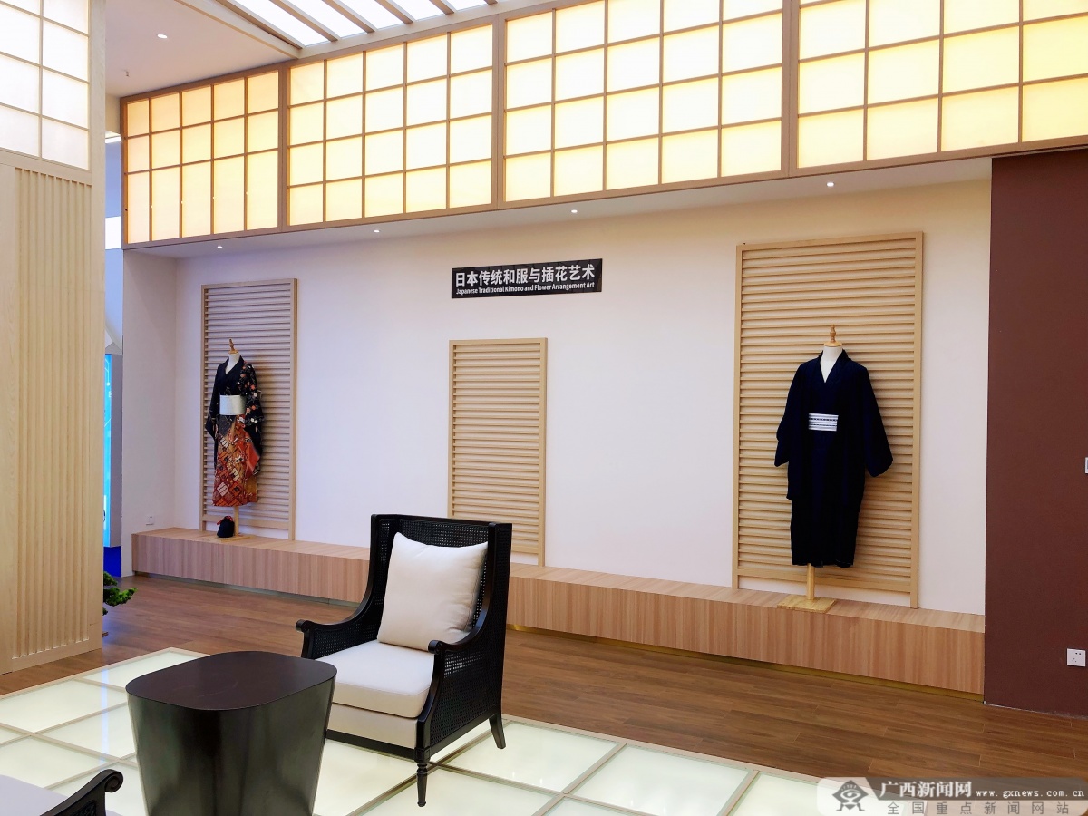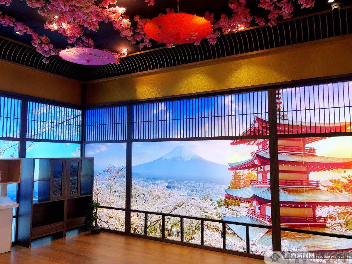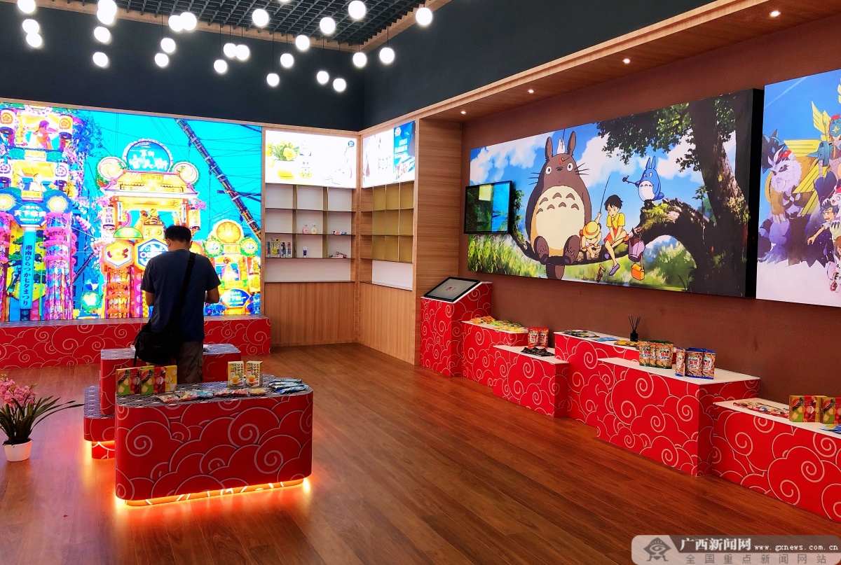 “我們現(xiàn)在看到的是‘春之色’部分,以最具有日本代表性的富士山與櫻花元素為春季設(shè)計核心,造型意向來自日本京都琉璃光院,讓人仿佛置身于一個與富士山隔空眺望的禪院。接下來,這里是‘夏之聲’部分,里面包含了許多日本動漫元素,其中不乏我們熟知的宮崎駿、手冢治蟲等大師的作品展示,‘秋之韻’部分融合了日本秋天的楓葉美景;‘冬之盼’部分主要體現(xiàn)的是日本高科技技術(shù)”中國—東盟特色商品匯聚中心招商部RCEP區(qū)域高級經(jīng)理梁曉婷介紹道。